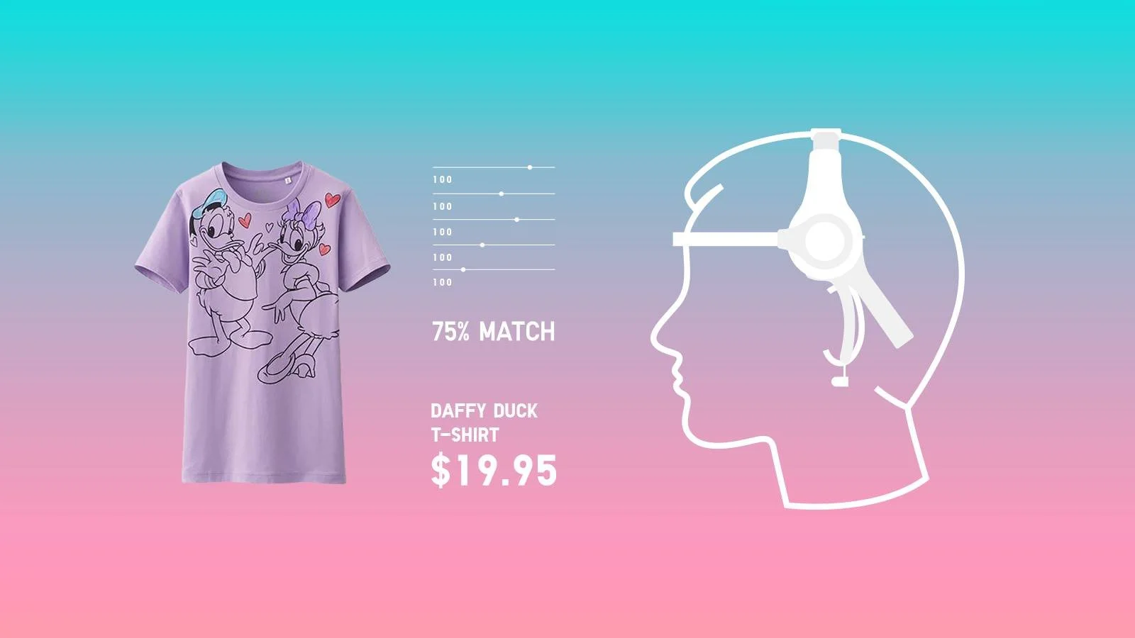 Collaborating with Melbourne University’s neuroscience department, UNIQLO shoppers were fitted with a headset that read their brainwaves. A custom-built algorithm analysed responses to video stimuli to identify their current mood and recommend a selection of suitable t-shirts. We monitored their brain activity as they viewed the results to determine which t-shirt they liked the most.